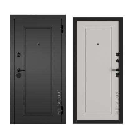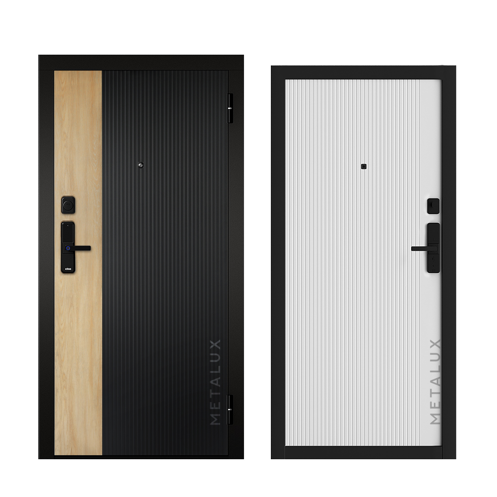 Внешняя отделка: МДФ 16 мм, пленка №97, цвет «Черный», замковая часть пленка №96, цвет «Дуб Мадейра», патина черная