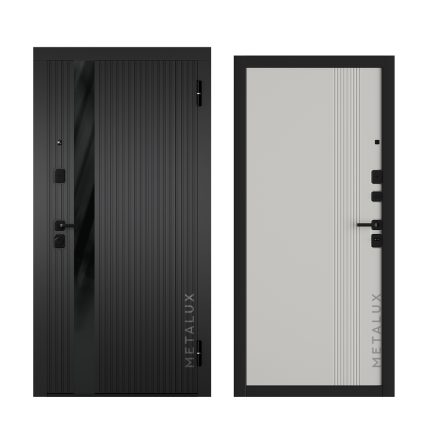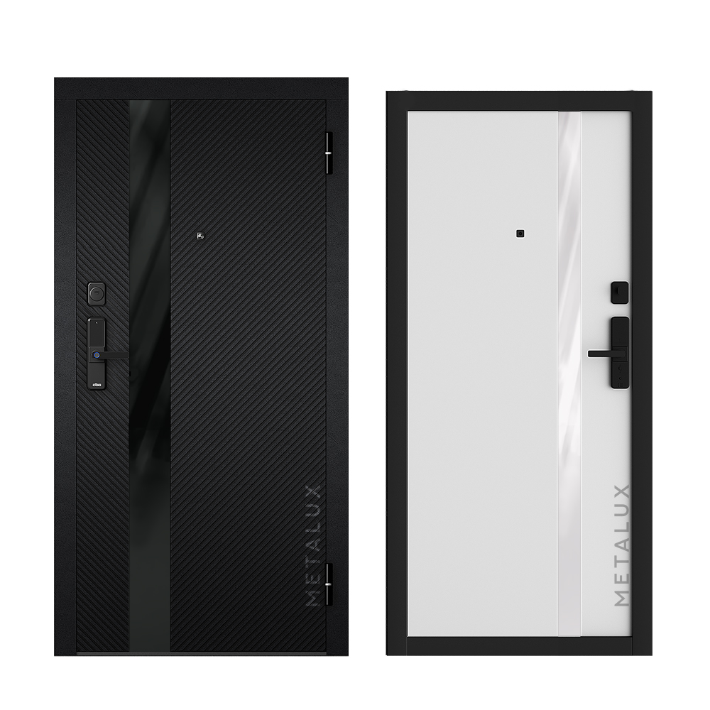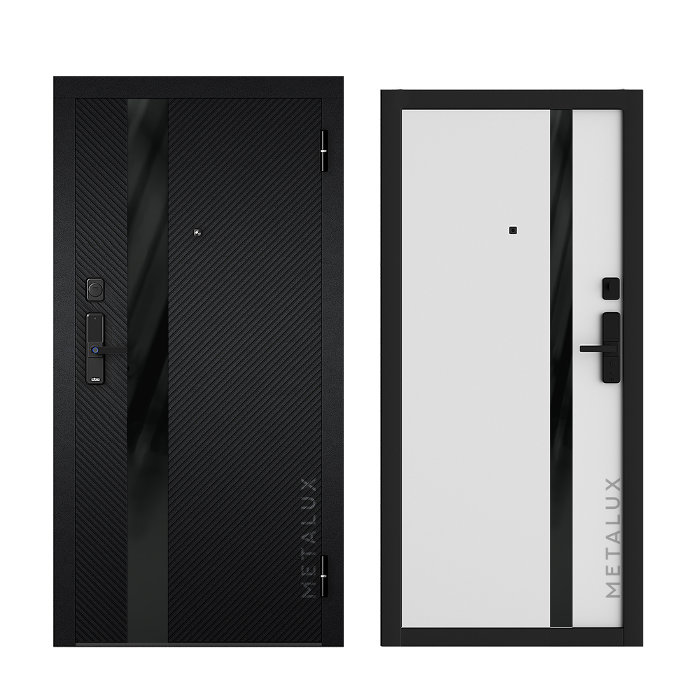 Внешняя отделка: панель МДФ 16 мм, пленка №83, цвет «Лофт черный», вставка из черного глянцевого стекла