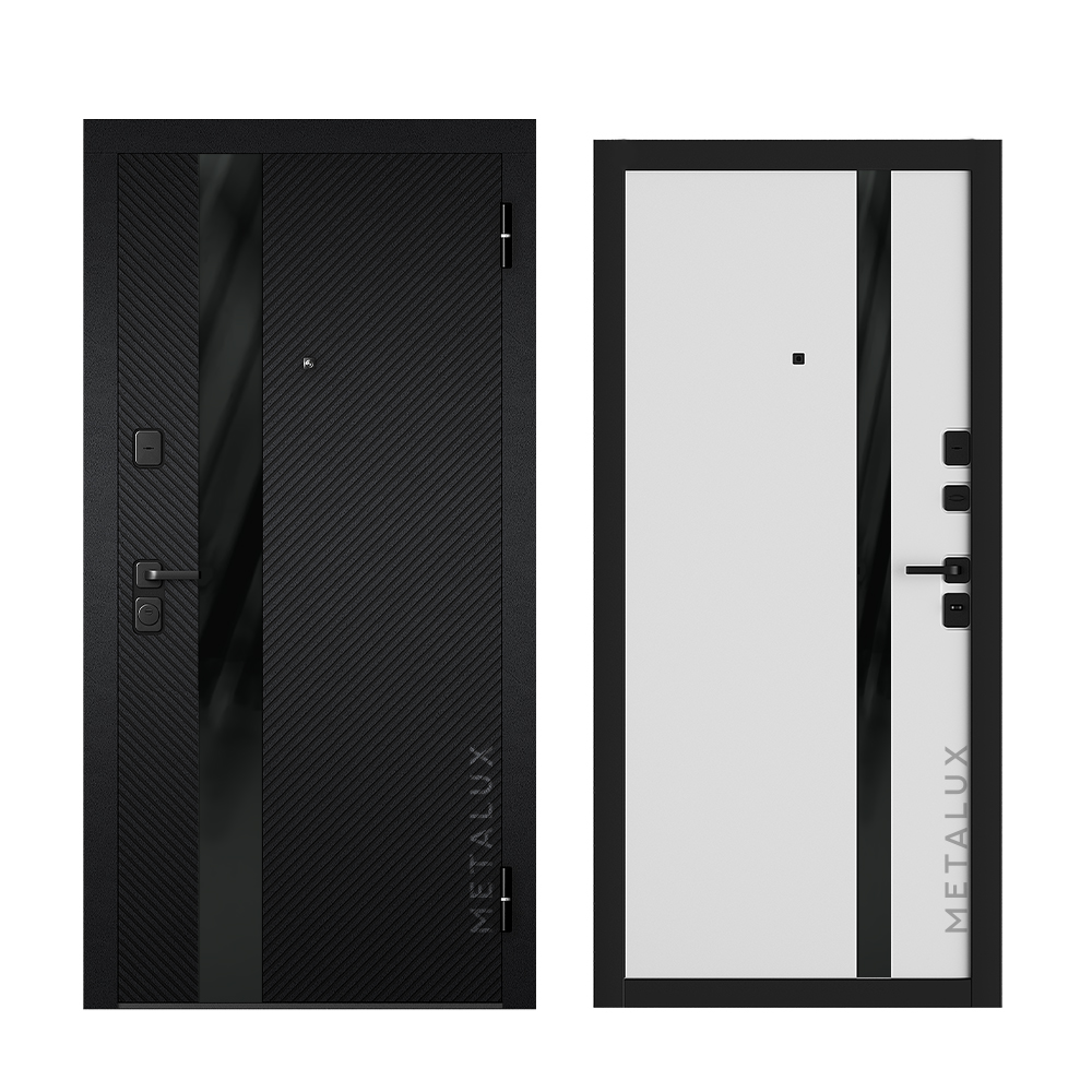 Внешняя отделка: МДФ 16 мм, пленка №83, цвет «Лофт черный», вставка из черного глянцевого стекла